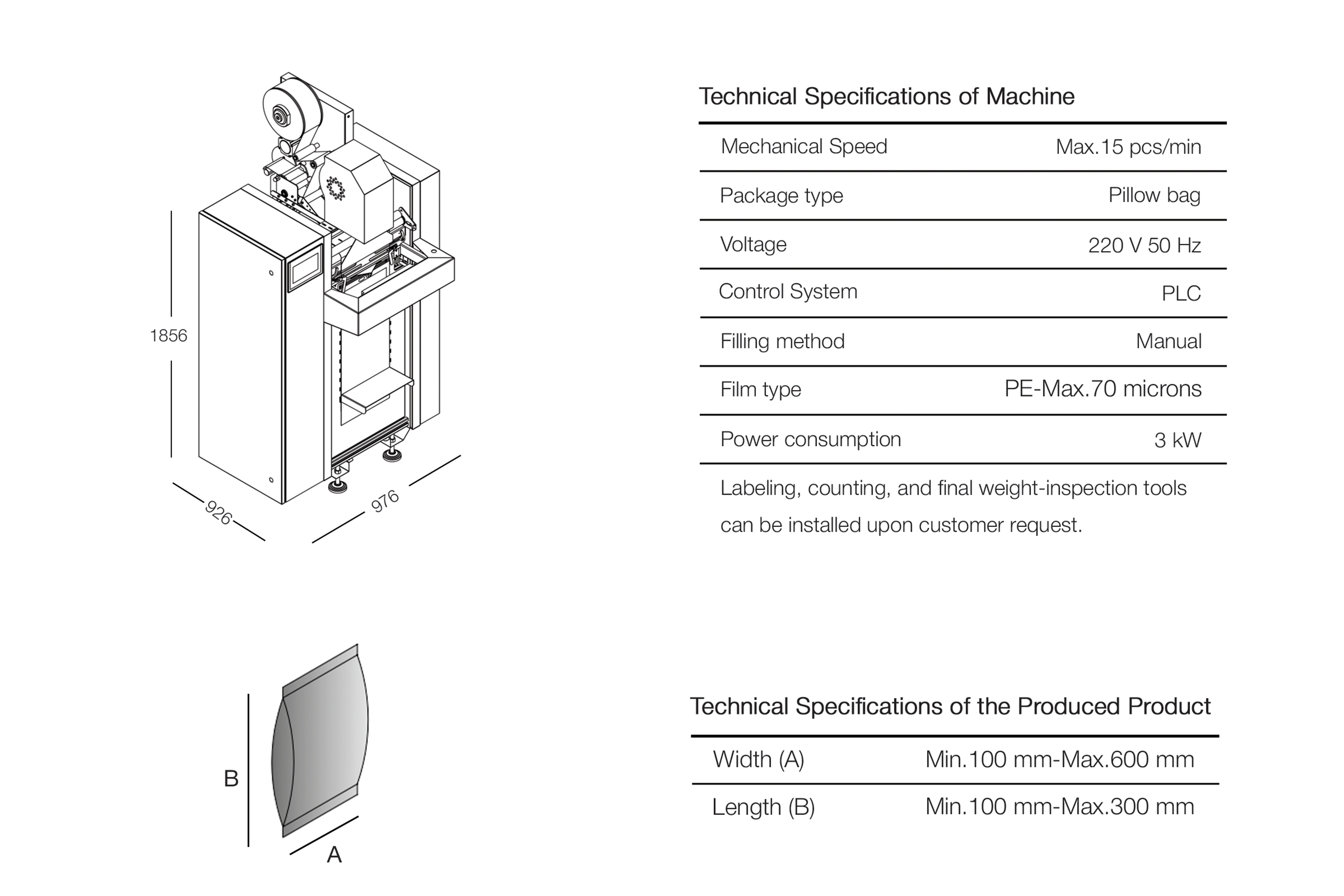 Designed for continuous production lines, this system uses pre-made roll bags to automatically form and seal packages. Bag filling is performed manually by the operator, while the thermal sealing unit ensures consistent strength and sealing quality.